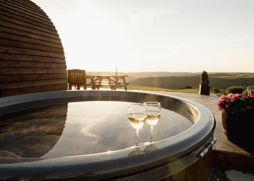 Views to be enjoyed from your own private dining area outside your picturesque glamping pod, or even better - from the luxurious vantage of an indulgent woodfired hot tub.
