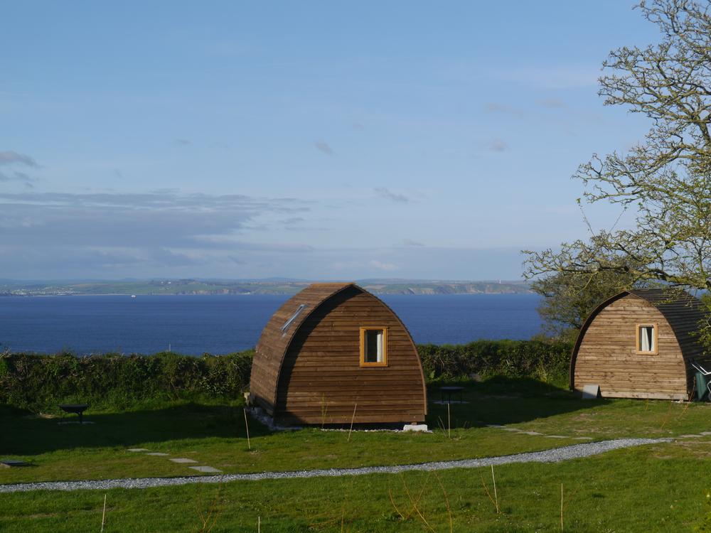 This idyllic Cornish landscape of Bodrugan Barton is now the home of six Wigwam® Cabins on two adjoining paddocks with stunning sea views - forty miles of coastline from Mevagissey to Rame Head and each cabin has its own private area and firepit.