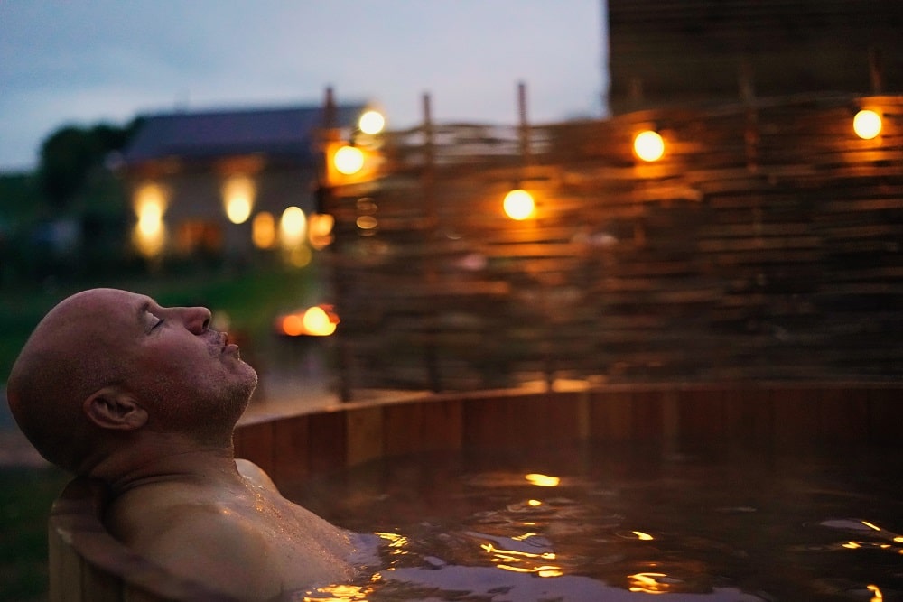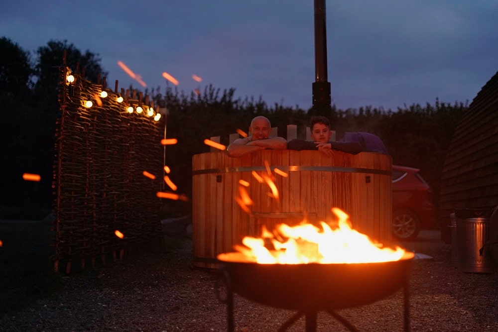 For an extra dose of relaxation, climb into your very own hot tub and enjoy the soundtrack of birdsong and gently swaying tree branches in the background.