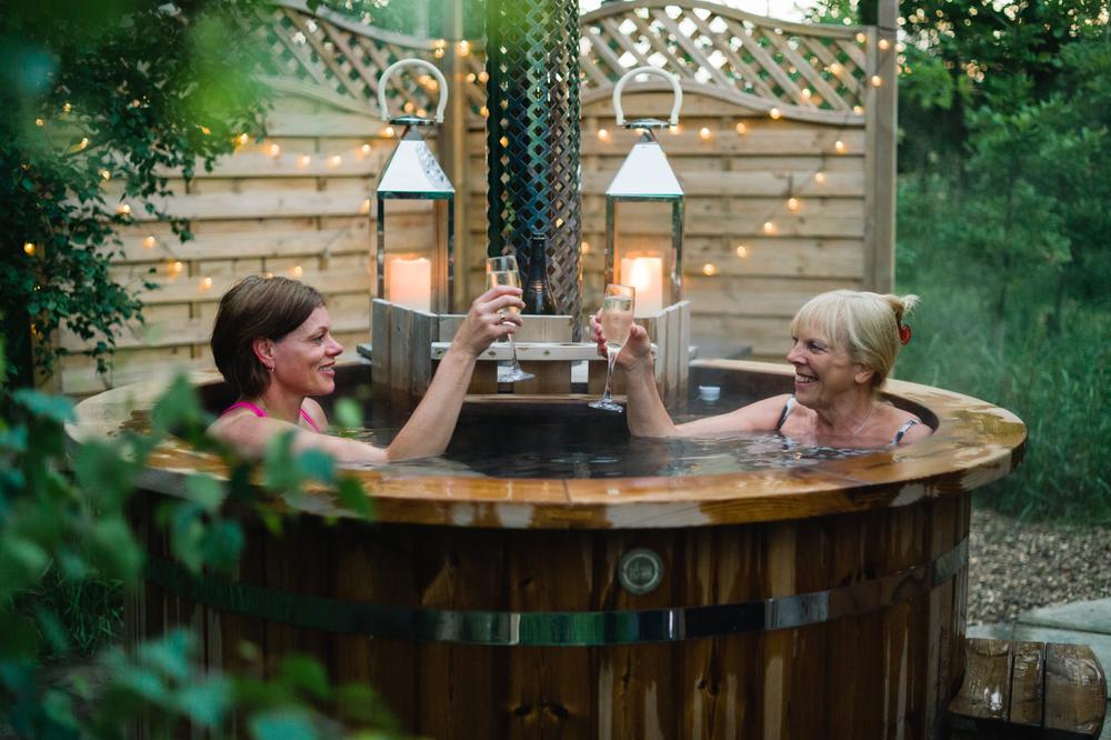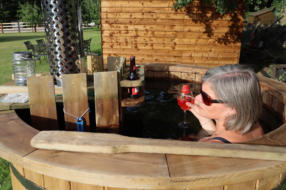 Handmade Scandinavian wood fired hot tub glamping near Leicester