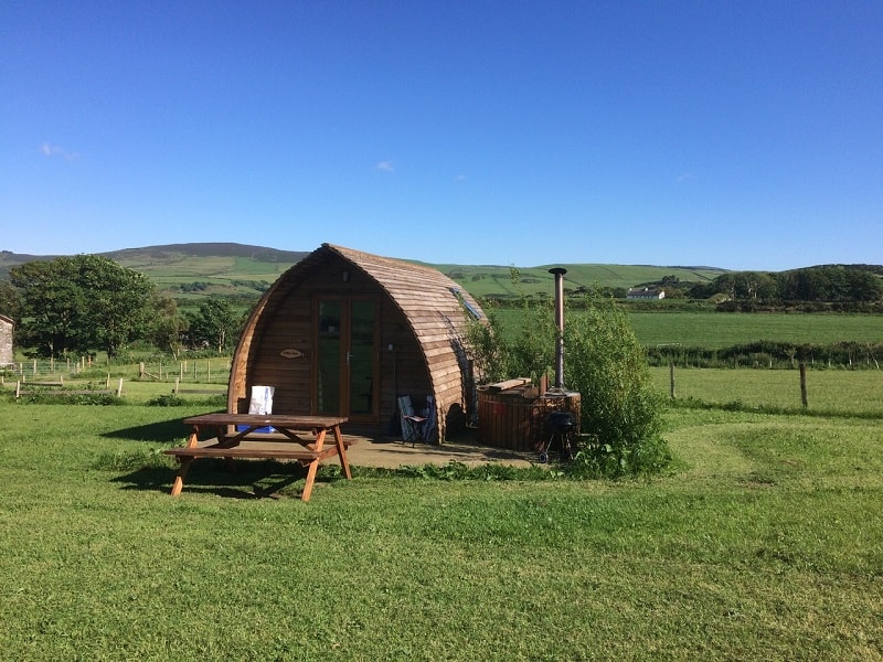 The farm is 2 miles from the picturesque Sunset City of Peel, which offers a variety of excellent restaurants, walks, pubs and beaches. Located half a mile up a farm lane the site is very quiet and family friendly.