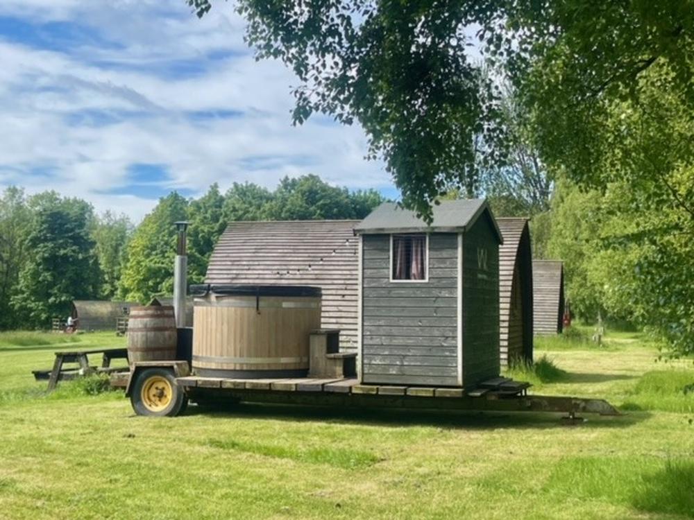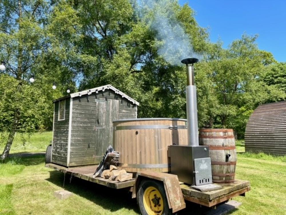 The mobile hot tub can be hired daily for non hot tub cabins. It will be parked beside the cabin. Book in advance, £65/day or £120 for 2 days including logs to heat it up.