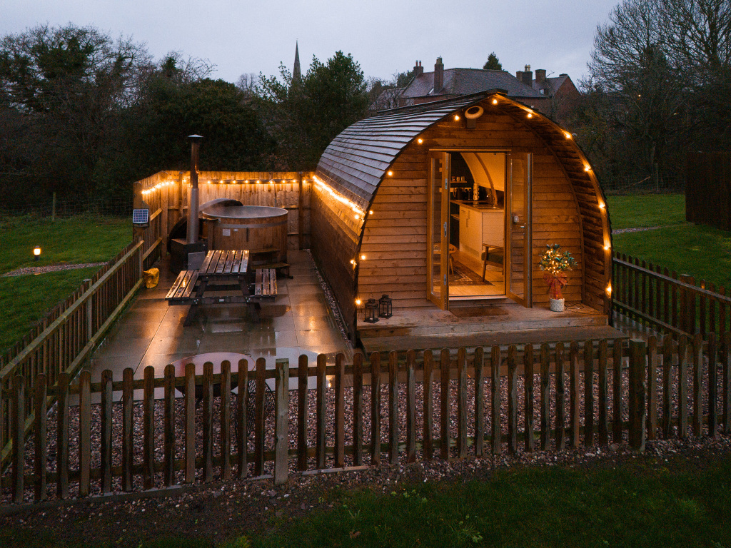 Seven luxury en-suite Wigwam Cabins - five with private wood fired hot tubs - are nestled in a beautiful spot in the lush and green countryside. The team is ready to give you a warm welcome as you spend your well earned break on our lovely working farm. Our 3 dog-friendly cabins are enclosed and fenced around the patio area.