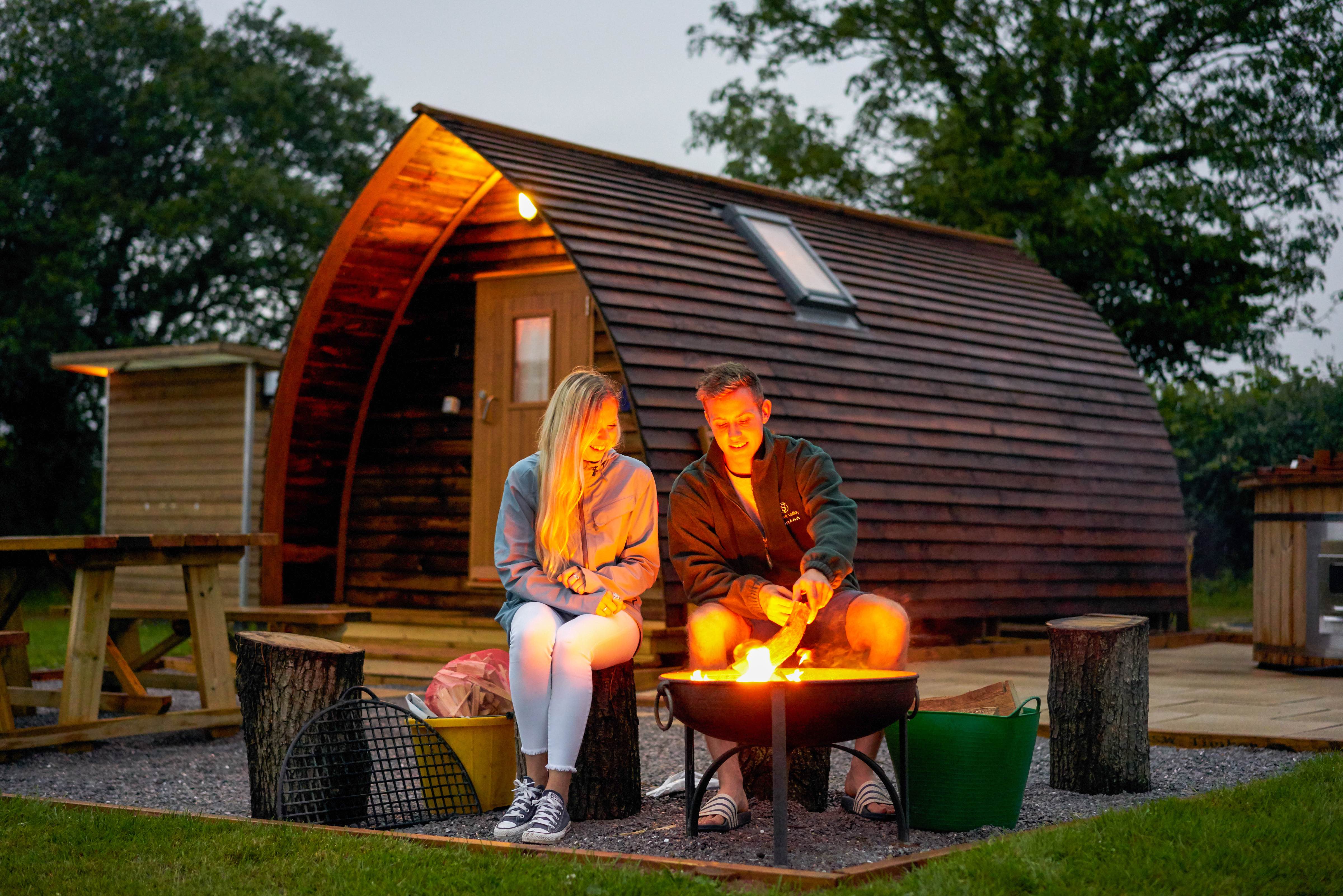 - 3 Big Chiefs - Sleeps 4 people (known as Hill View Wigwam cabins they each have an adjacent wet room - sink, toilet and shower, and a wood fired hot tub