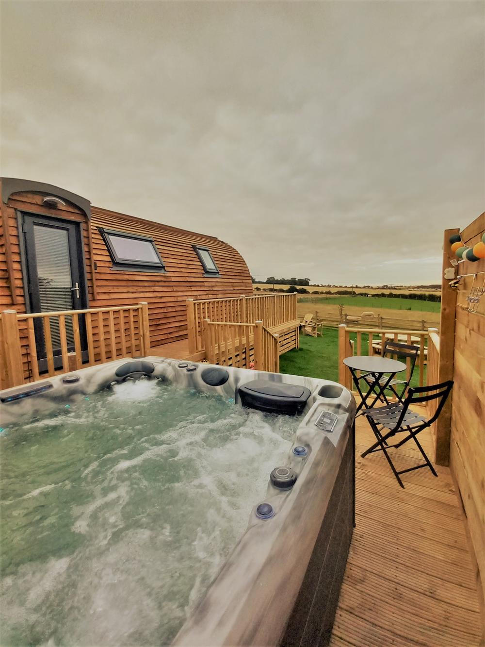 Each cabin comes with an electric jacuzzi style hot tub with the temperature always constant by the means of an air heat source pump.