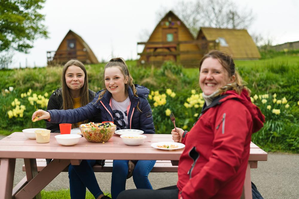 For Sheiling Cabins and en-suite Wigwam Pods there are mini kitchenette within the cabin with 2 ring hob, microwave, kettle and toaster.