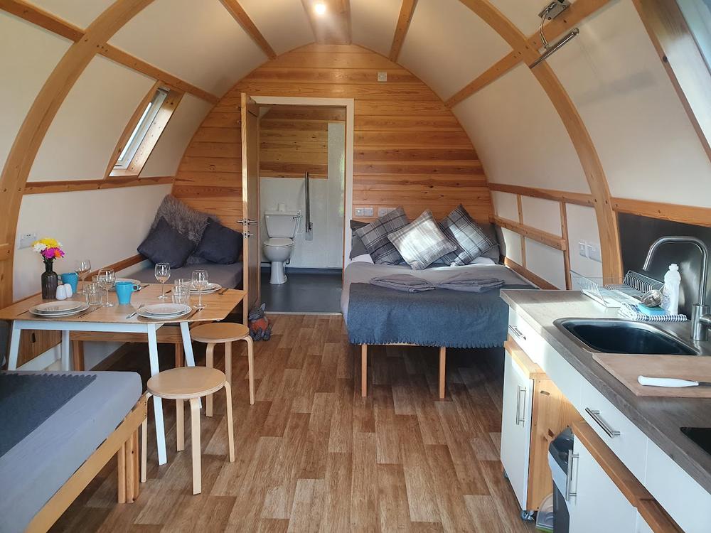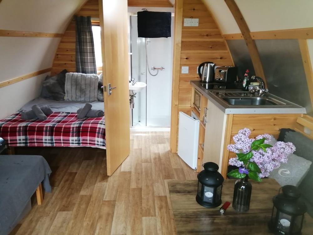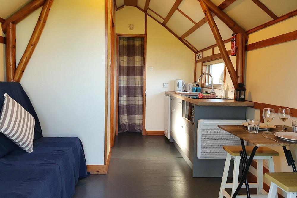 Sheiling Cabins have separate bedroom and living/kitchen area making them a great choice for families or two couples sharing.